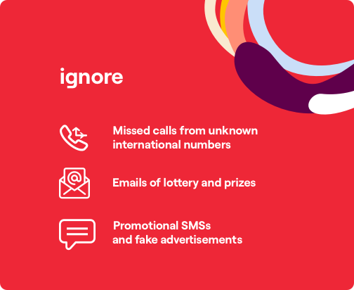 do not respond to fraudulent SMSs or lottery prizes or calls from unknown international numbers